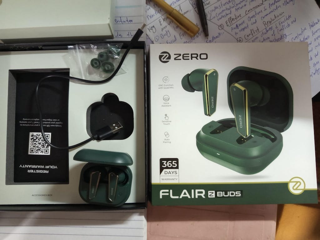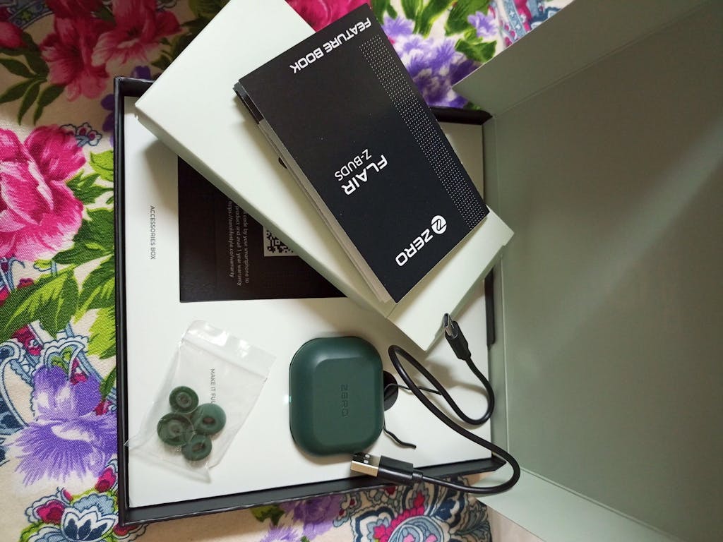 • Each FLAIR Earbuds package includes: 1 pair of FLAIR earbuds Charging case USB Type-C charging cable User manual