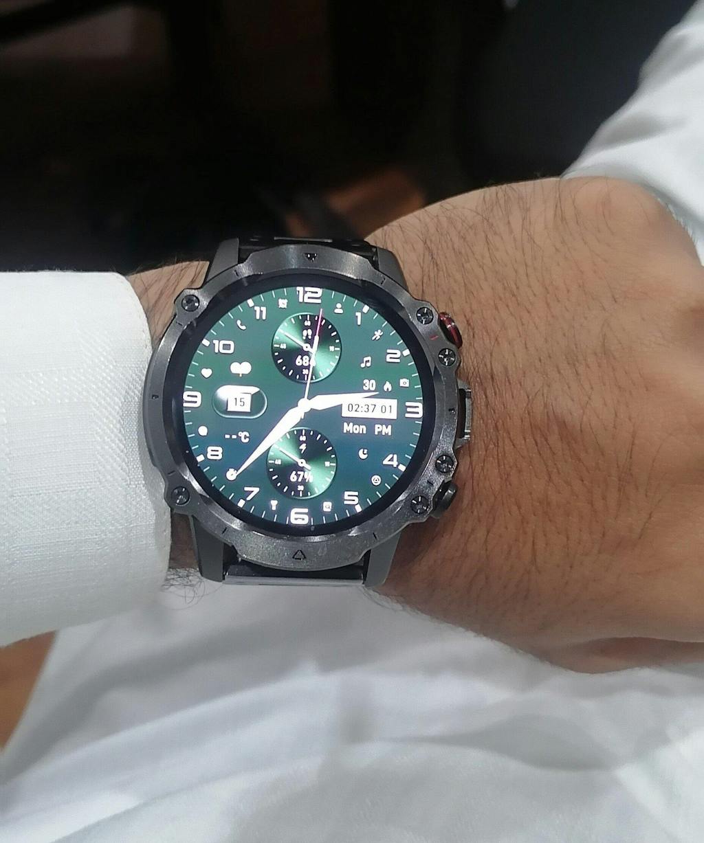 • It has over 100 cloud-based watch faces, 4 built-in games (Flappy Bird, 2048, Whack-A-Mole, Thunder Fighter), alarms, flashlight, calculator, DND mode, sedentary reminder, water reminder, and weather updates.