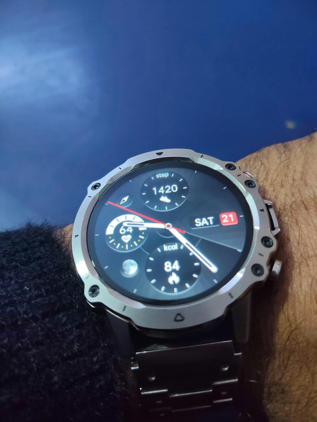 • The watch combines a durable metal and plastic body with a stainless steel strap, weighing 66g, ensuring both style and comfort.