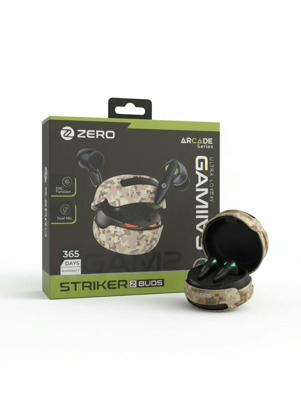 • The Striker Earbuds are available in three bold colors: Black, Green, and Camo, designed to match your style and personality.